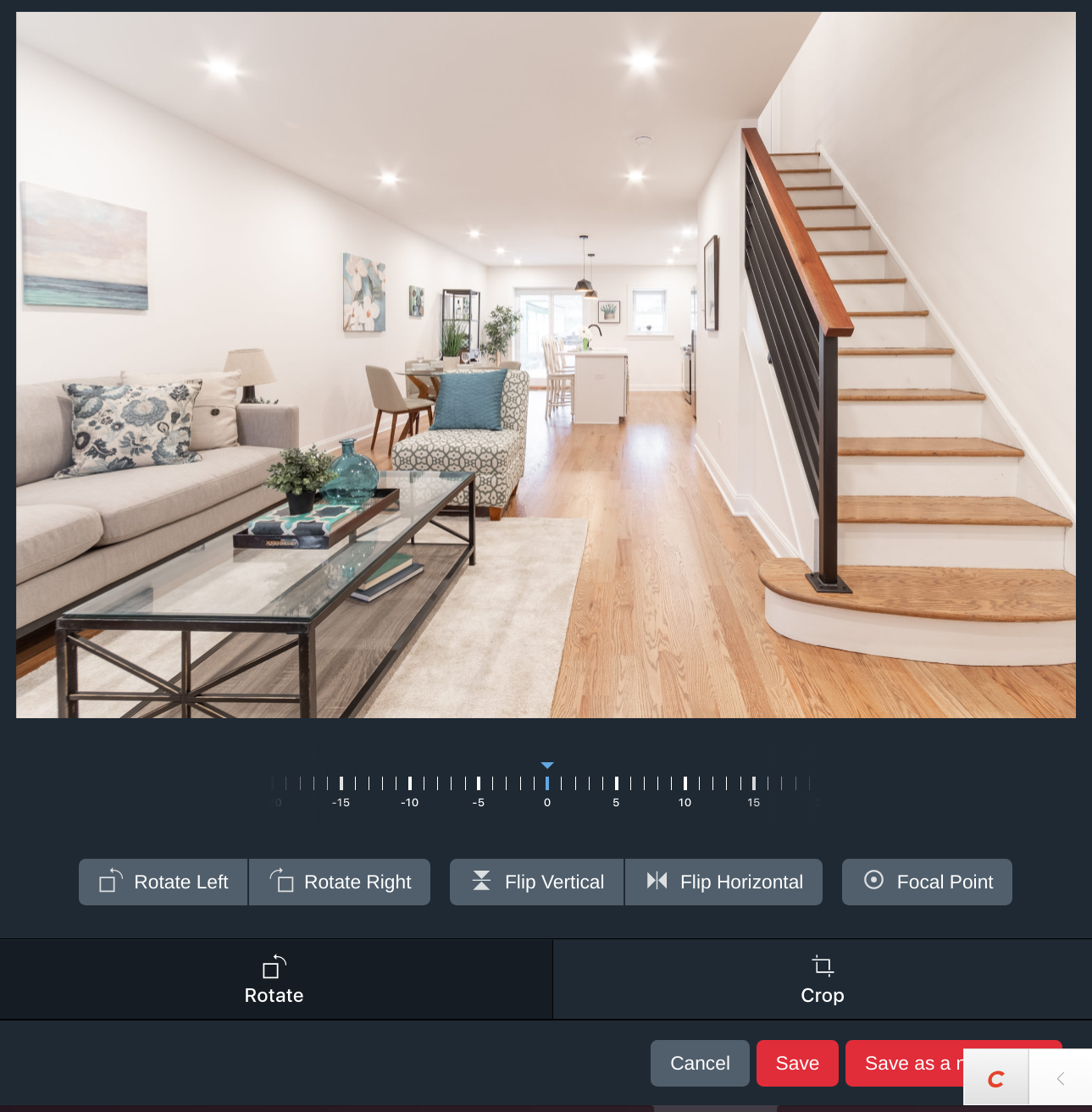 If you select edit, you will be taken to a screen where you can apply basic transformations on the image: